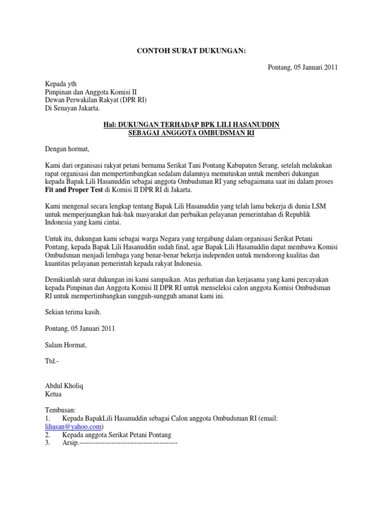 Kumpulan gambar artikel contoh surat dukungan masyarakat yang baik dan benar 2019.